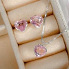 Conjunto de Coração Cravejado Rosa Escuro Prata 925