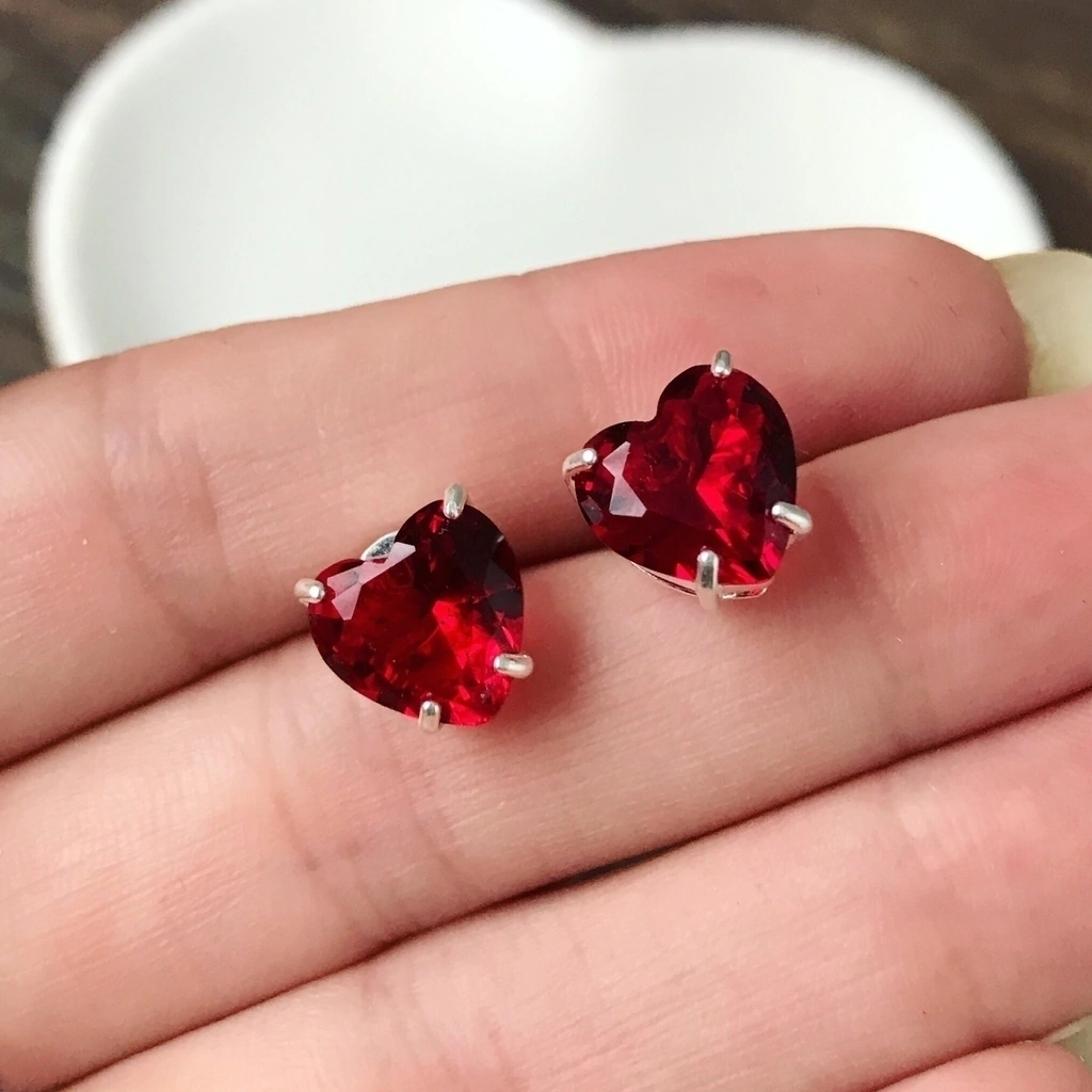 Um lindo brinco em prata 925 cravejado com uma pedra de zircônia em formato de coração na cor vermelho lindo e delicado.